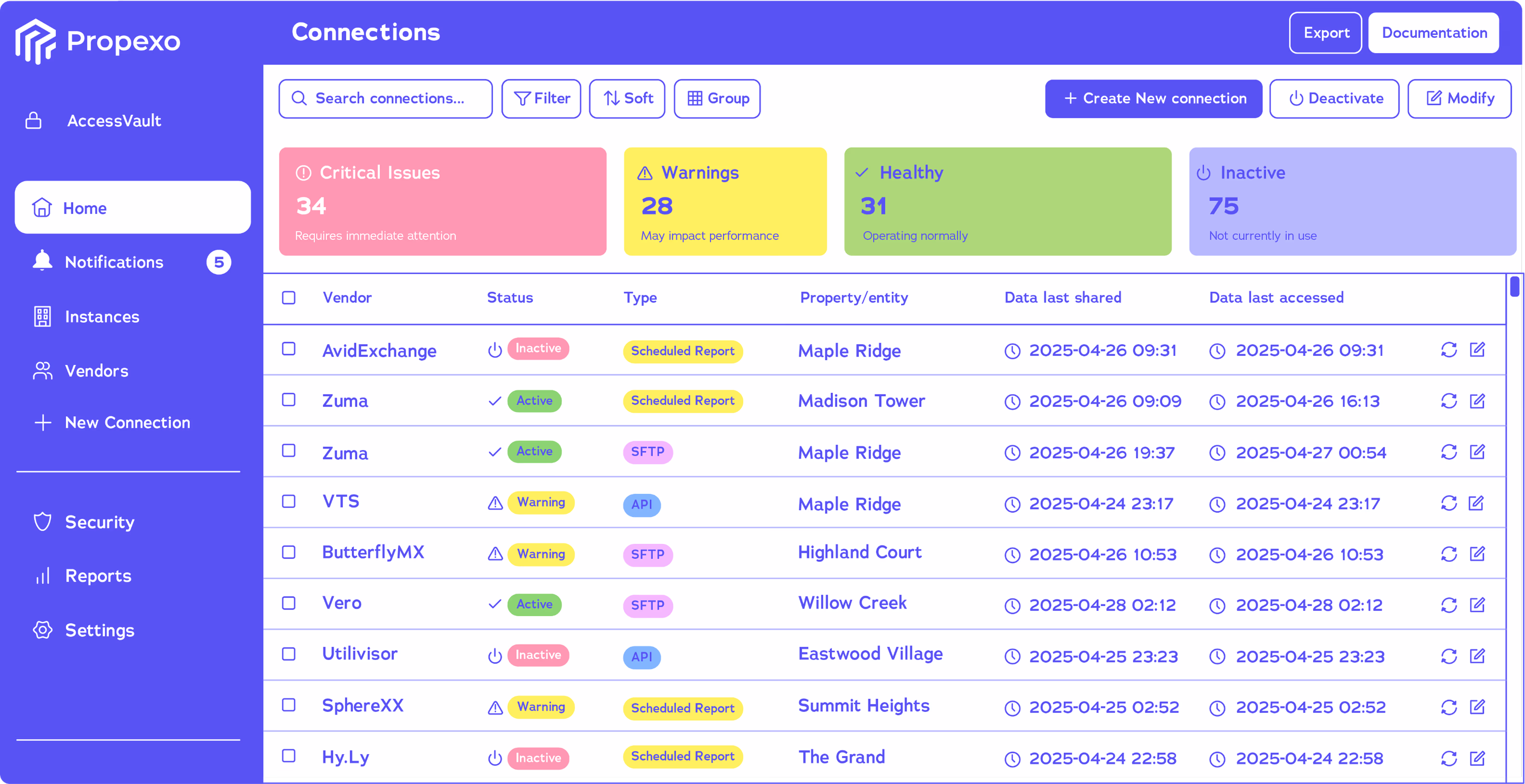 Monitor the health and performance of all property technology connections across your entire portfolio in a single, easy-to-use interface.